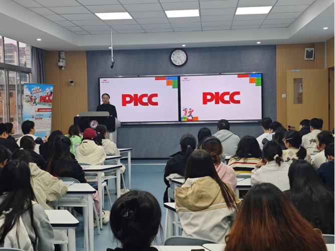 随后,中国人民财产保险股份有限公司安康市分公司招聘经理为毕业生做了详尽的招聘宣讲。通过宣传片和PPT展示介绍了PICC深厚的企业文化、发展历程以及本次招聘的岗位需求、人才培养体系、职业发展通道、薪酬福利待遇,并清晰地说明了简历投递、笔试面试等入职流程,让同学们对公司和招聘环节有了全面深入的了解。