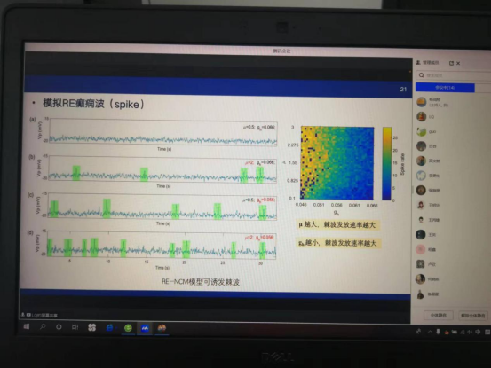 李老师主要结合自己的研究内容:睡眠型癫痫(Sleep-related Epilepsy, SE)是临床中常见的癫痫类型之一,SE发作常发生于睡眠期间。最新研究表明癫痫波与睡眠纺锤波在脑电图中表现出“竞争”与“共存”现象。这一最新发现对于研究SE的控制具有重要的临床意义。然而,这两种现象的内在病理机制细节尚不清晰。本报告聚焦于这一最新发现,系统介绍了SE与睡眠间的关系,并从神经计算建模角度出发,结合临床脑电数据验证了癫痫波与纺锤波之间存在的“竞争”与“共存”现象,并给出了相应的机制假设,以期为SE控制提供一种新思路。