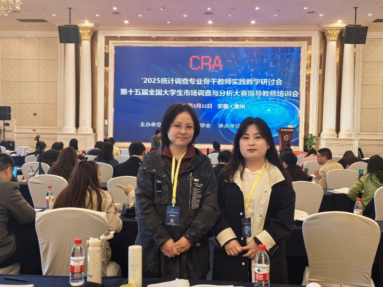 为进一步提升公司教师在员工市场调查实践指导中的专业水平,3月22日至23日,统计系教师强海漫和郭楠楠参加了由中国商业统计学会主办的“第十五届全国老员工市场调查与分析大赛指导教师培训会议”。