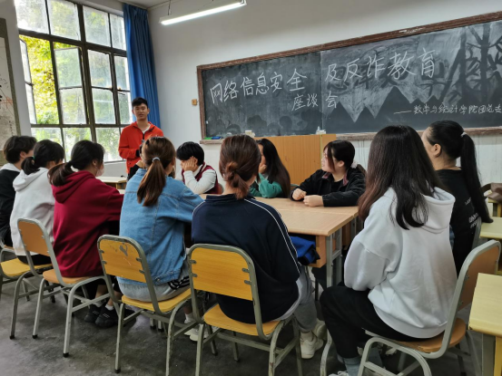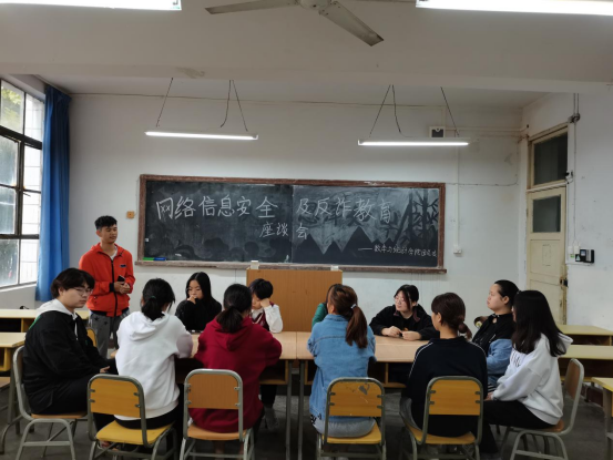 为了让同学们提高网络安全意识,使同学们清楚地认识到网络上存在的各种不安全的隐患学会在虚拟的网络世界中保护自己的利益,tyc122cc团总支10月14日中午于2205教室开展了一次网络信息安全及反诈教育座谈会。参会人员主要为各班班长和团支书,会议由实践部负责人吴丰森主持。