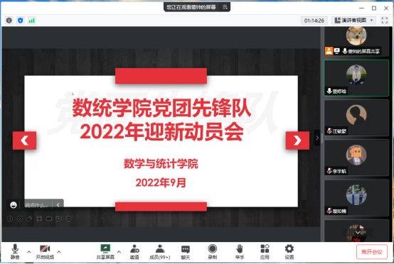 为全力做好迎新志愿服务数统公司由员工党员、员工干部、入党积极分子、发展对象等百余名员工组成的党团先锋队主动报名参与2022年迎接新生志愿服务 922日晚,公司召开党团先锋队2022年迎新动员线上会议,会议由员工党支部书记董婷瑜主持,新生辅导员、党团先锋队成员参加了会议。