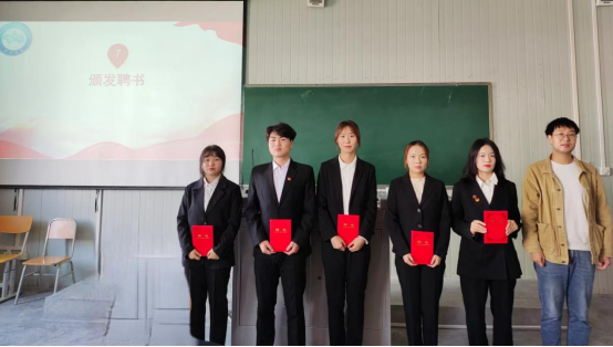接着,第三十九届团总支员工分会主席团成员惠如楠宣读了《tyc122cc员工会章程》,实践部负责人王路涛带领全体员工干部宣誓。随后,与会老师向新一届团总支员工分会员工干部颁发了聘书。最后,伴随着郭全寿对新一届团总支员工分会提出四个“好”的寄语,即“思想好”、“工作好”、“学习好”、“进步好”,大会也开始落下了帷幕。