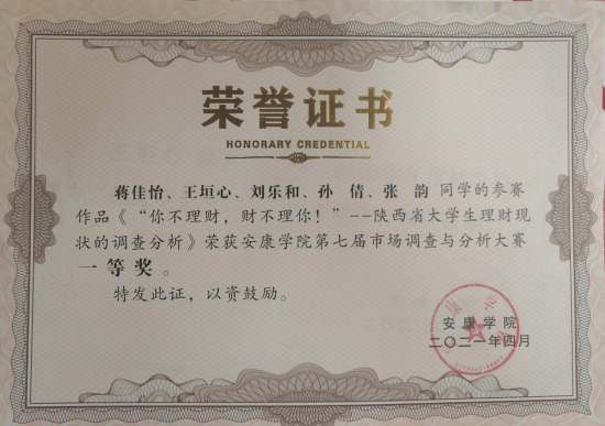 第十二届陕西省市场调查大赛省级三等奖