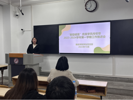 2023年10月13日,tyc122cc员工党支部在1201室召开“数励破茧”优良学风传帮带2023-2024学年第一学期工作推进会,特邀指导教师王秋芬、2021级奖学金获得者、各年级班委参加了会议,会议由员工党支部书记董婷瑜主持。