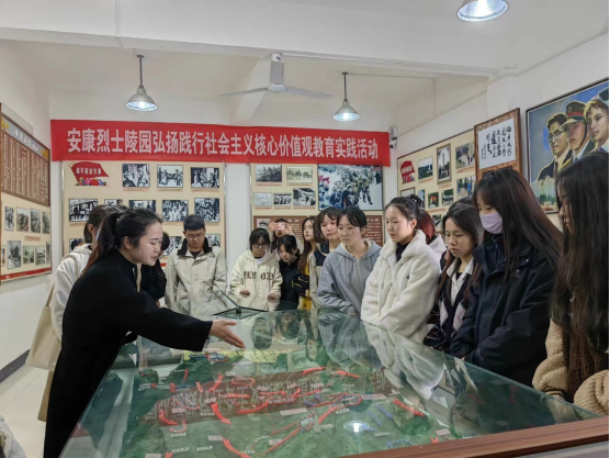 安康烈士陵园是为纪念在牛蹄岭战斗中牺牲的革命烈士而修建的,同学们在庄严肃穆的烈士纪念碑前默哀、献花,随后在讲解员的带领下参观了“牛蹄岭战斗展览室”和“三线学兵事迹展览室”,符先辉将军英勇事迹、牛蹄岭战斗时的激烈场面使同学们深有感触,大家真切地感受了革命先烈们坚定的信念、执着的追求和不懈的努力,被革命先辈为夺取革命胜利前赴后继、英勇奋斗的伟大精神感染。