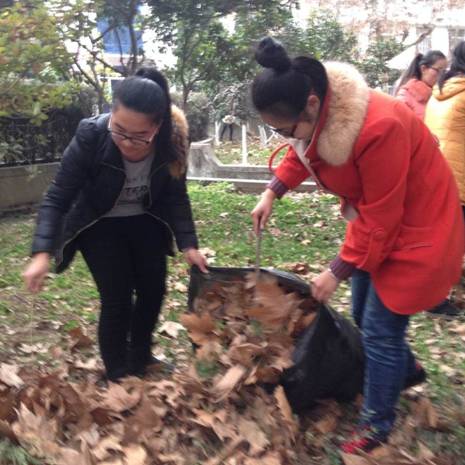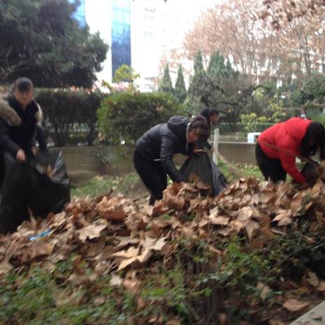 2014年12月26日数学与统计系大一全体员工在江南校区第一食堂前面的花园进行义务劳动,清扫死角垃圾,共建美丽校园。