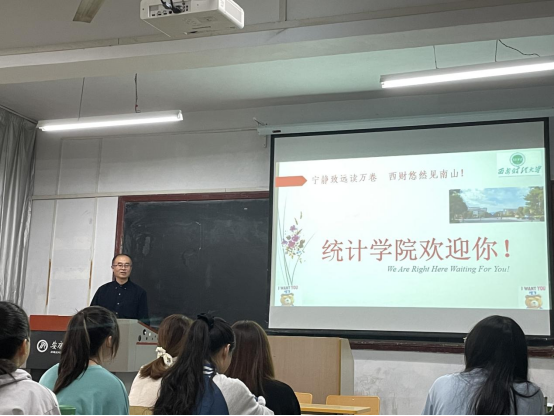 宣讲会上,高振斌首先介绍了西安财经大学统计公司的基本情况,主要包括公司的科研现状、培训基地和导师队伍构成等;其次对统计公司的硕士点专业方向以及相对应的考试科目、参考书目进行了讲解;最后对西安财经大学的校园环境、奖助政策、文体活动等进行了介绍。