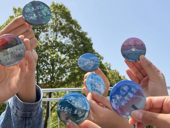 拔河比赛开始后,队员们使出浑身力气、团结一致把绳子向后拉,绳子中间的红线左右摇摆,两边队员都整齐地往后倒、向后退,班级同学为参赛同学呐喊加油,现场气氛十分活跃;紧接着一声哨响,“五人六足”活动正式开始,各班运动员们步伐整齐向前冲,力求以最快的速度前进。“一二、一二、一二……”的口号响彻场地;团体项目最后一个活动是“一传到底”,在各班运动员的相互协作和默契配合下,呼啦圈也都被顺利地传递了一圈。在个人项目中,同学们扫码答题,积累了丰富的心理健康知识,答题完毕后领取心愿便利贴,大家写下了自己的小确幸、小烦恼、对生活的感悟、近期的目标、对未来的期许... ...小小的便利贴承载了同学们满满的真情。随后同学们来到“踩气球”场地,在趣味游戏中体会了轻松、愉快的氛围,心情得到了放松。活动最后,参与者领取了心语徽章。