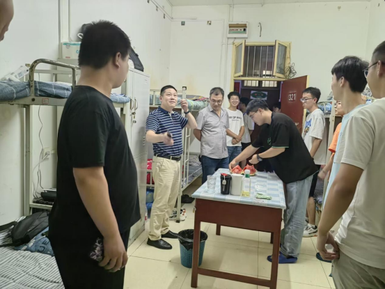 炎夏已过,初秋将至。tyc122cc迎来了新一批学子。为了进一步了解2023级新生的宿舍生活情况并让同学们能尽快适应新环境。9月5日晚上,公司党总支书记郭全寿、经理成波、副经理杨高翔、学工办主任董婷瑜、团总支书记马勇和23级新生辅导员刘佩,深入新生宿舍,为同学们送去了温暖的问候与祝福。