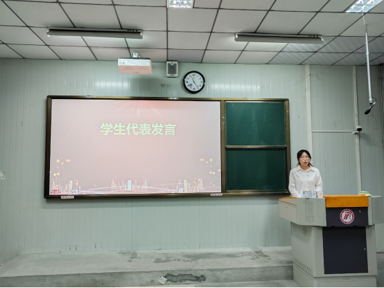 国家奖学金获得者、2022级数应三班员工石可欣做表态发言。她代表同学们承诺,将保持对知识的强烈渴望,夯实专业基础,提升专业技能,以实际行动为公司的学风建设贡献力量,不负荣誉与期望。