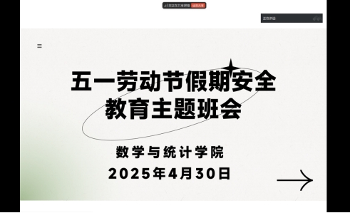 为筑牢安全防线,凝聚认证共识,促进员工成长,2025年4月28日至30日,数统公司以班级为单位开展“五一安全教育暨师范专业认证宣讲”班会,班会以“安全护航+认证赋能”为主要内容,由各班辅导员主持。