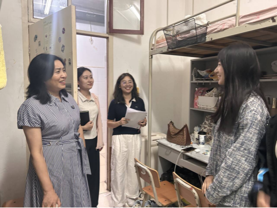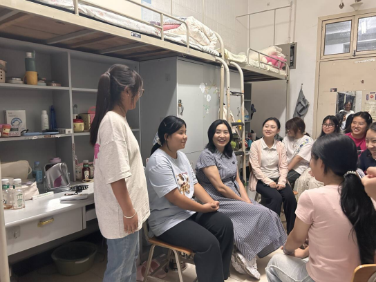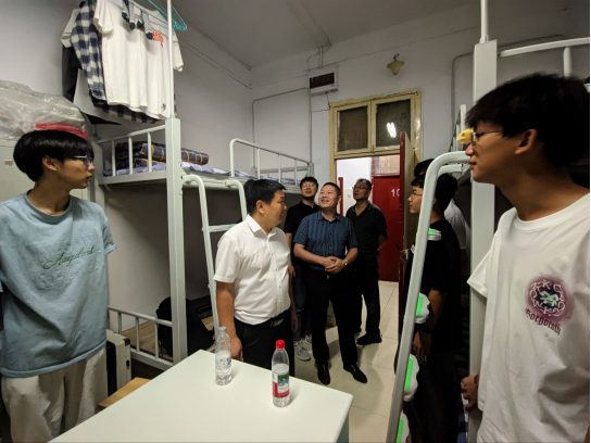 走访过程中,院领导与同学们进行了亲切交谈。领导班子们细致地询问同学们初入大学的感受,详细了解他们的生源地、专业选择、入学手续办理以及住宿餐饮等基本情况,耐心倾听同学们初来乍到的困惑与期待。并他们叮嘱新生要尽快转变角色,熟悉校园环境,合理安排学习生活,积极融入大学集体,遇到任何困难都要及时向辅导员和公司反映。辅导员老师们也就日常管理、学业指导、心理健康等事项与同学们进行了沟通交流,建立了联系渠道。