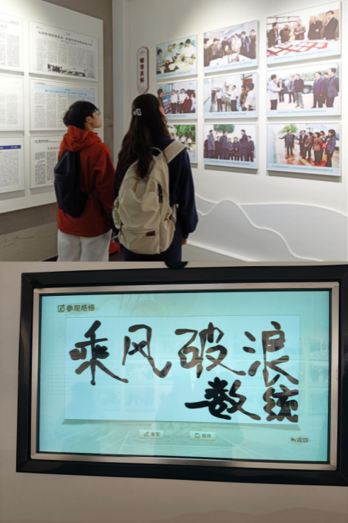 活动中,校史馆讲解员结合馆内的文字史料、老照片、实物展品等,从公司的创办背景、发展变迁、人才培养等方面,为同学们生动讲述了公司的历史沿革。“同心逐梦寄语未来”电子签名区互动环节中,同学们纷纷留下参观感悟,用数字笔迹传递对校史的共鸣与祝福。活动尾声,新生辅导员邹珊在“弦歌不辍 奋楫笃行”主题展区前,结合党建引领、人才培养成果勉励大家:“校史里的每步发展都是前辈拼搏的印记,要从历史中汲取智慧,传承‘笃学、尚行、励志、创新’的校风。”