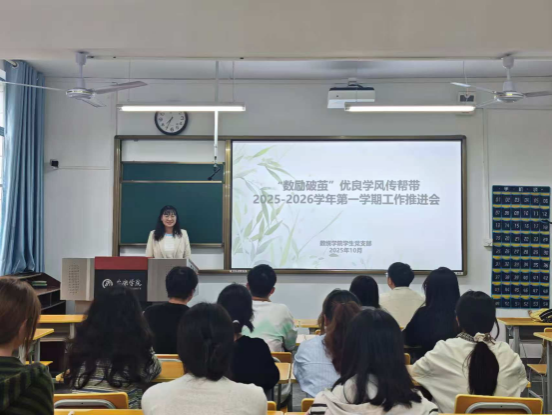 推进会上杨碧莲首先对“数励破茧”项目作了整体介绍,并围绕新学期“每周一讲”“每日一题”等品牌活动进行了具体安排,明确了主讲人职责与协作机制,为新学期学风建设工作的有序推进奠定基础。
