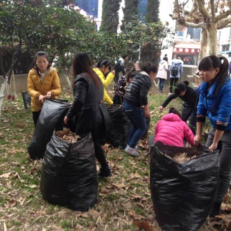 2014年12月26日数学与统计系大一全体员工在江南校区第一食堂前面的花园进行义务劳动,清扫死角垃圾,共建美丽校园。