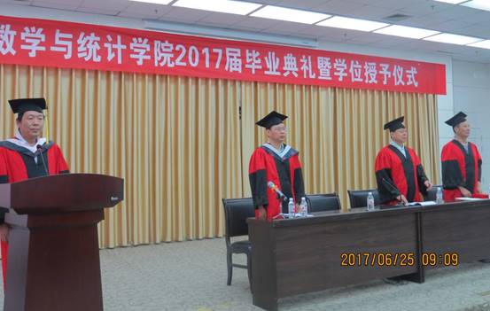 在雄壮的国歌声中,2017届毕业典礼拉开了帷幕。大会第一项由2013级数应二班员工,西安理工大学研究生张英同学代表2017届全体毕业生发言,她代表全体毕业生向母校及全体老师表达最诚挚的感谢,回忆自己大学四年的点点滴滴,并分享了自己大学四年考研的经验,最后祝福所有老师事业之树常青;祝母校人才辈出更好的发展。