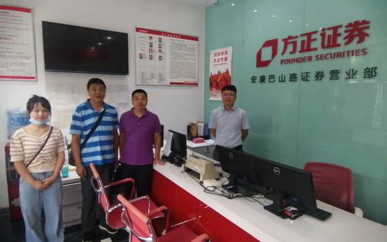 为了落实“百名专家学者下基层”工作安排,进一步提升统计工作与金融研究的融合度,加强校企合作。2020年8月24日,公司统计系主任徐龙华、学工班主任马新华、辅导员刘佩一行三人到方正证券股份有限公司安康巴山路证券营业部进行产学研合作交流。