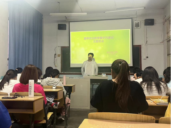 班会开始,辅导员们首先给大家介绍了夏季大家需要注意的各种安全隐患,通过一些典型的案例讲解,让大家把安全牢记于心,尤其是让大家懂得了夏季在江河游泳存在的溺水安全隐患,并在交通安全、食物腐败、夏季防中暑等方面也做了全面的介绍,通过一系列的介绍与强调,同学们纷纷表示会遵守校纪校规,把安全放在第一位。