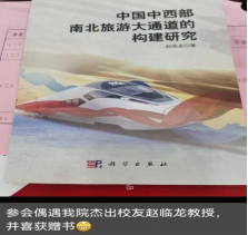 随后会议进行交流。赵临龙教授与公司承办的陕西省高中教师省级脱产研修项目《高中数学学科培训》学员罗理想进行交谈,同时与相关高校专家就转型发展进行交流,并且向相关专家赠送《中国中西部南北旅游大通道的构建研究》著作。