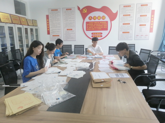 7月5日,员工支部书记董婷瑜、团总支书记刘佩召集十余名志愿者就毕业生离校工作进行分工安排,志愿者分为信息组、领取组、后勤组。对离校手续办理、领取材料流程、委托代领材料核验等程序进行了说明,要求志愿者细心、耐心、热心,按照程序开展工作,热心服务。接着后勤组对毕业生的各项材料进行了分班、分类整理,确保最大限度节省毕业生领取材料的时间。