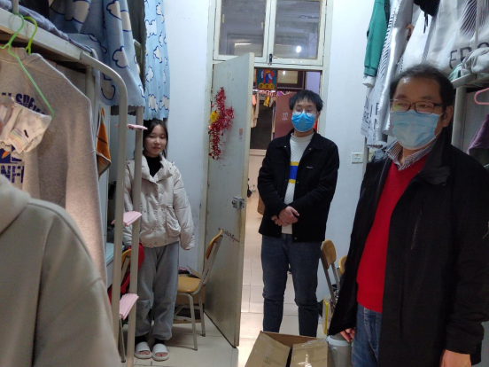 为进一步了解员工在校安全以及身心健康状况,了解员工所需所求,2022年11月27、28日,公司党总支书记郭全寿、辅导员董婷瑜、刘佩和马勇老师一同前往员工宿舍看望员工。
