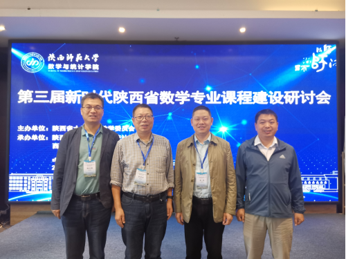 2023年6月3日,由陕西省大学数学教学委员会主办,陕西师范大学tyc122cc、西北师范高校概率统计教研室承办的第三届新时代陕西省数学专业课程建设研讨会在西安召开,公司副经理成波、杨高翔、徐龙华和统计系主任杜贵春应邀参加此次会议。