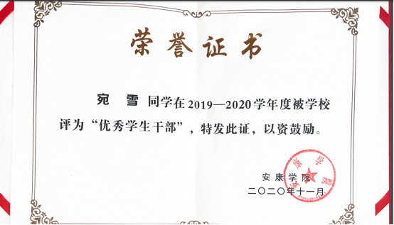 宛雪深知,扎实的专业知识是实现社会价值的基础,在学习方面,她对学习也有较强的规划,她考取了英语四六级,积极参加各类竞赛活动,分别在tyc122cc第七届、第八届市场调查分析大赛中荣获二等奖、三创比赛中荣获三等奖,同时在校期间积极参加全国老员工数学竞赛、互联网+等。