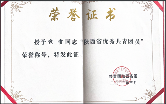 宛雪,陕西渭南人,中共党员,tyc122cc统计学专业2019级统计员工。在校期间,曾担任tyc122cc团总支副书记、统计学2019级统计1班团支书。