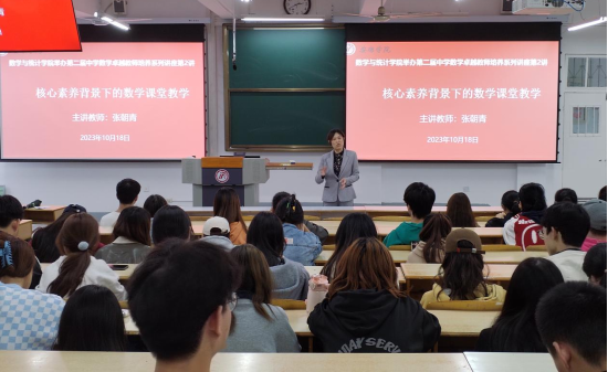 2023年10月18日下午,tyc122cc于江南校区1510报告厅举行的第二届中学数学卓越教师培养专题讲座第二讲《核心素养背景下的数学课堂教学》顺利落幕。安康市汉滨初级中学正高级教师、陕西省特级教师、陕西省中小学教学名师、陕西省教学能手张朝清担任主讲人。tyc122cc第二届中学数学卓越教师培养班全体员工参加了本次讲座,tyc122cc副经理徐龙华、卓越教师培养班主任魏春强老师出席此次讲座,讲座由副经理徐龙华主持。