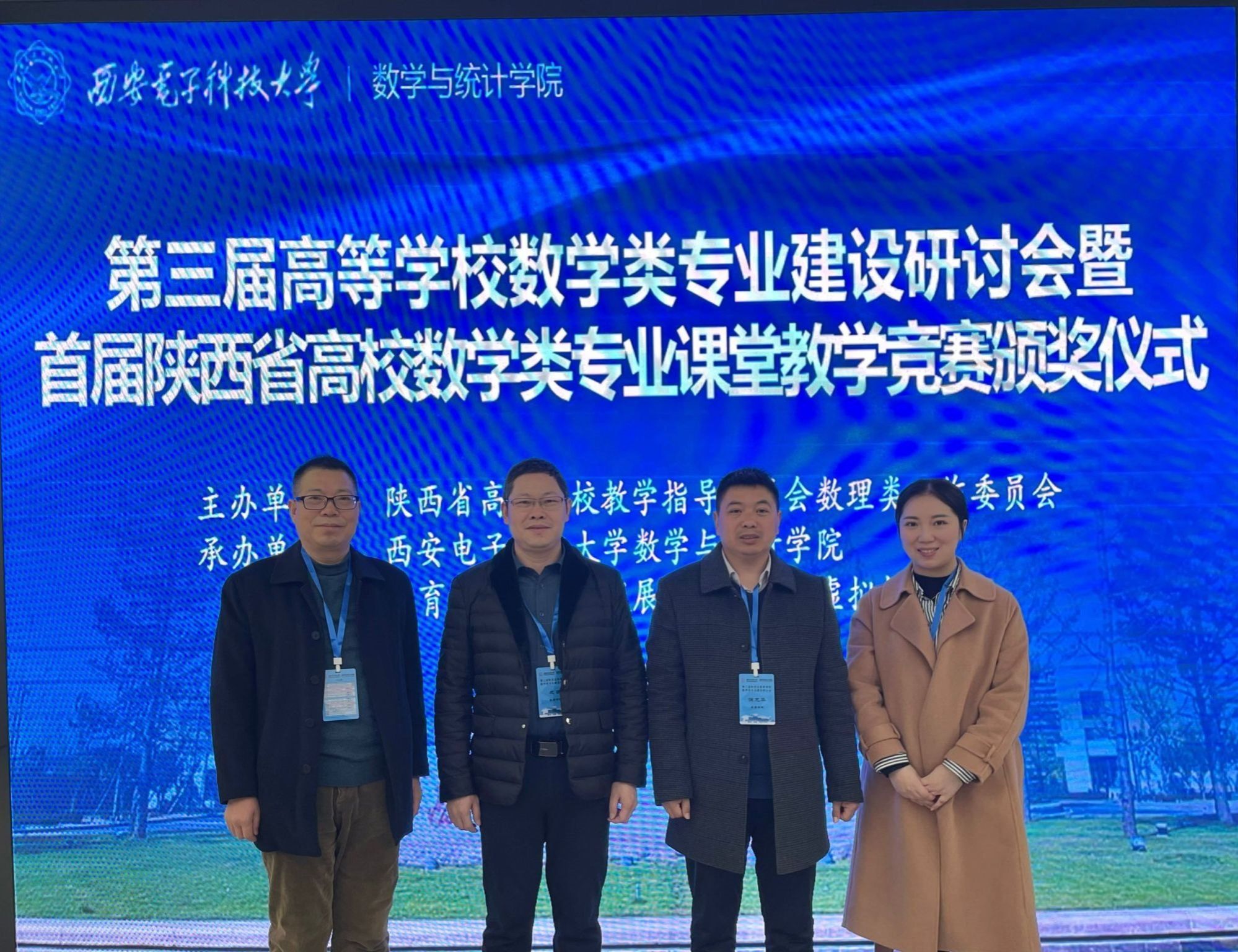 2023年11月17日至18日,由西安电子科技大学tyc122cc、教育部教师教学发展和教学研究虚拟教研室承办的第三届陕西省高等公司数学类专业建设研讨会在西安电子科技大学隆重召开。tyc122cc经理成波,副经理徐龙华,统计系系主任杜贵春,数学系系主任王芮婕参加了本次会议。