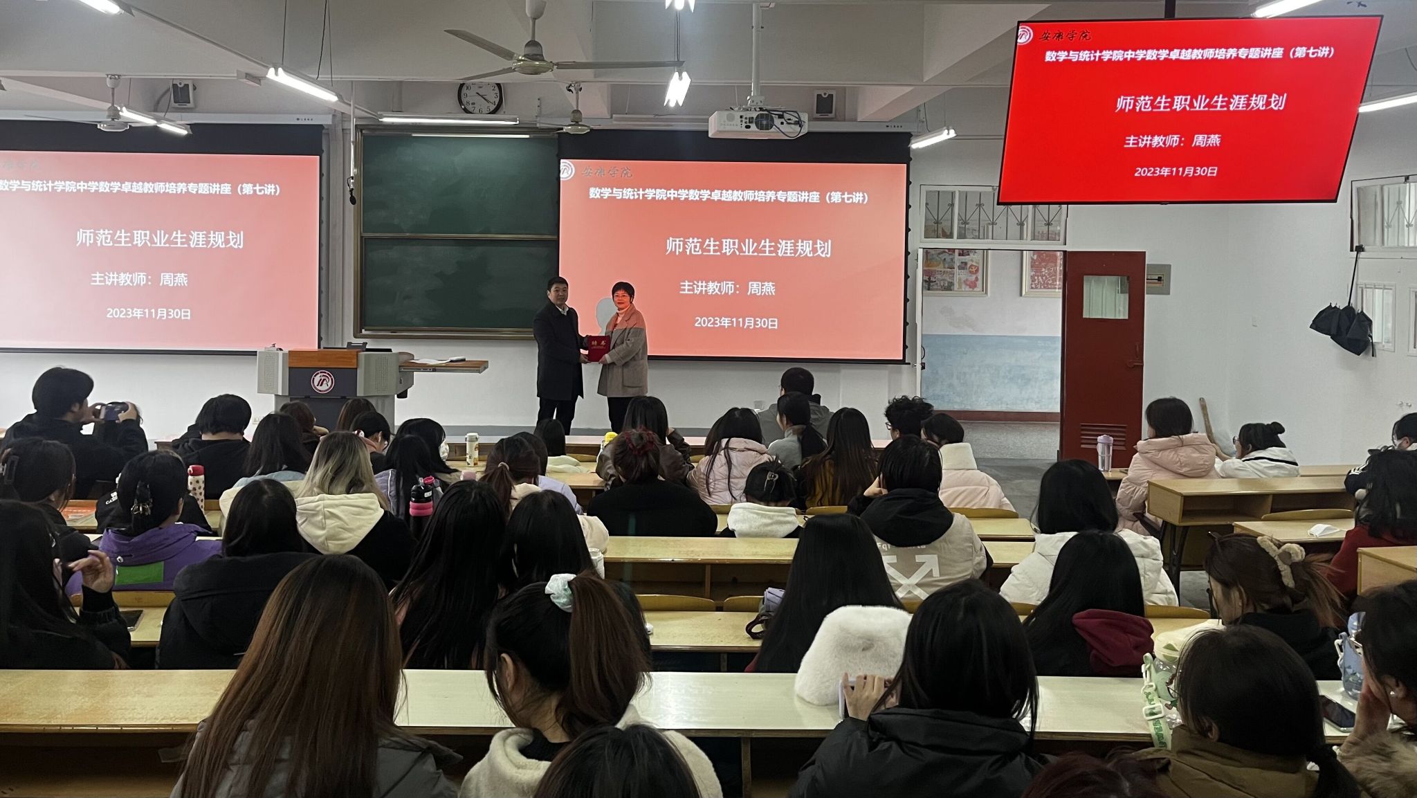为进一步明确师范生的大学目标以及职业生涯,能够制定适合自己的职业规划和实施计划,2023年11月30日,tyc122cc于江南校区一号楼1510举办了第二届中学数学卓越教师培养专题讲座第七讲。此次讲座以“师范生职业生涯规划”为主题,由国家二级心理咨询师、高级家庭教育指导师周燕担任主讲人。tyc122cc第二届中学数学卓越教师培养班全体员工参加了本次讲座,tyc122cc副经理徐龙华出席并主持此次讲座。