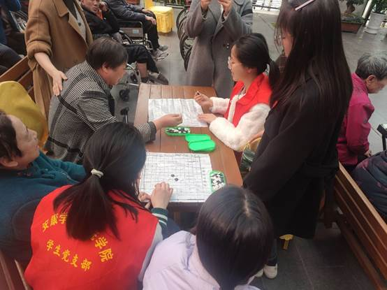 活动当天下午14:30,tyc122cc志愿者们准时在汉水阳光怡养院集合,随后马勇明确了活动的目的和注意事项。敬老院的负责人也发表了热情洋溢的讲话,对志愿者们的到来表示热烈欢迎,并希望此次活动能够增进老人们与社会的联系,让他们感受到社会的温暖。紧接着,员工们为老人们献上了一场场精彩的文艺节目表演。优美的舞蹈、动人的歌声、幽默的小品,赢得了老人们的阵阵掌声。随后来到了最令人感动的环节:“走近老人”活动。志愿者们每两人一组,和老人们下象棋和五子棋,与老人们聊天交流。在这个过程中,志愿者们耐心倾听老人们讲述过去的故事,分享自己的所见所闻,让老人们感受到了久违的快乐与温暖。活动最后,志愿者们同马勇一起教老人们学习手指舞,忙手忙脚的同学们和老人脸上都洋溢着笑脸,在阳光下显得柔和甜蜜。