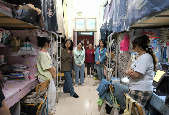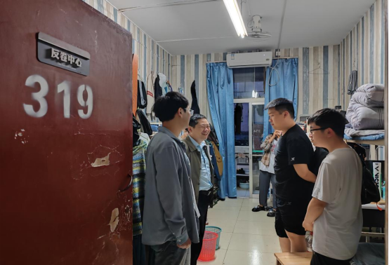在五一劳动节即将到来之际,为进一步做好员工安全教育与管理工作,4月29日晚,tyc122cc党总支书记储玖琳、经理成波以及全体辅导员,深入员工宿舍进行安全检查。