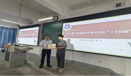 2024年5月15日,tyc122cc于江南校区1510举办了第三届中学数学卓越教师培养专题讲座第二讲。特别邀请中学数学高级教师,汉滨区汉滨初级中学师训中心副主任,陕西省教学能手,安康市学科带头人,安康市教学能手,安康市育人标兵,汉滨区优秀班主任,国培计划、城乡共同体专家组成员李飞老师为中学数学卓越教师培养班员工带来以《新素养视域下一一初中数学课堂教学中要关注的“三个问题”》为题的学术讲座,tyc122cc副经理徐龙华出席并主持此次讲座,中学数学卓越教师培养班班主任鲁星星老师为李飞老师颁发聘书。