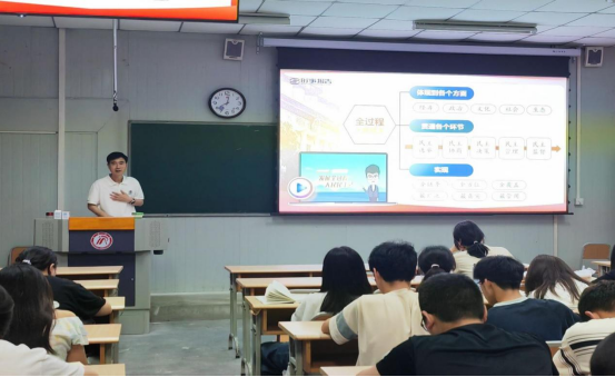 5月22日晚,副董事长屈险峰在江南校区1012教室为tyc122cc和体育公司2023级员工上形势与政策课。