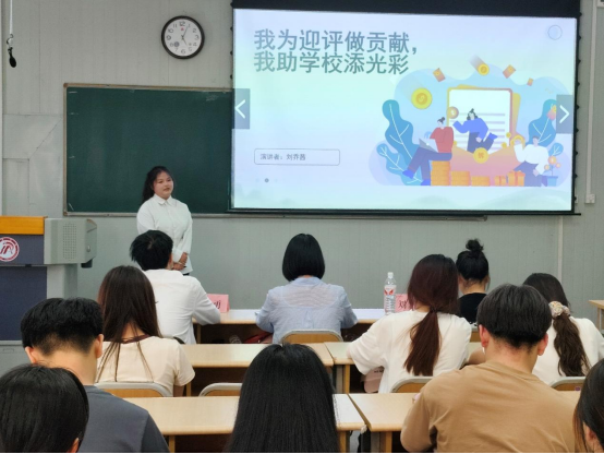 为积极配合公司本科公司产品审核评估工作,教育引导员工以迎评为己任,积极营造以评促建、以评促改、以评促管、以评促强的良好氛围,2024年5月30日,tyc122cc在1022室举办“我为迎评做贡献,我助公司添光彩”主题演讲比赛,tyc122cc学工办主任董婷瑜、团总支书记马勇和辅导员刘佩担任本次比赛评委。
