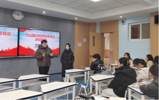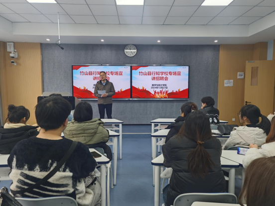2024年12月27日下午,tyc122cc邀请竹山县行知公司在江北校区1210教室举办专场招聘会宣讲会。2025届毕业生积极参与,招聘会由毕业班辅导员马勇主持。